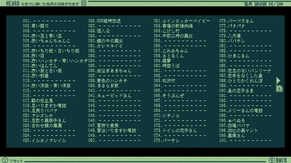 怪異をテーマにしているのは面白いし、システムもオリジナリティに溢れており評価が高いのも納得なのですが、個人的にはひたすらテキストを読んでいく(比較していく)という単調さが気になってしまいました。