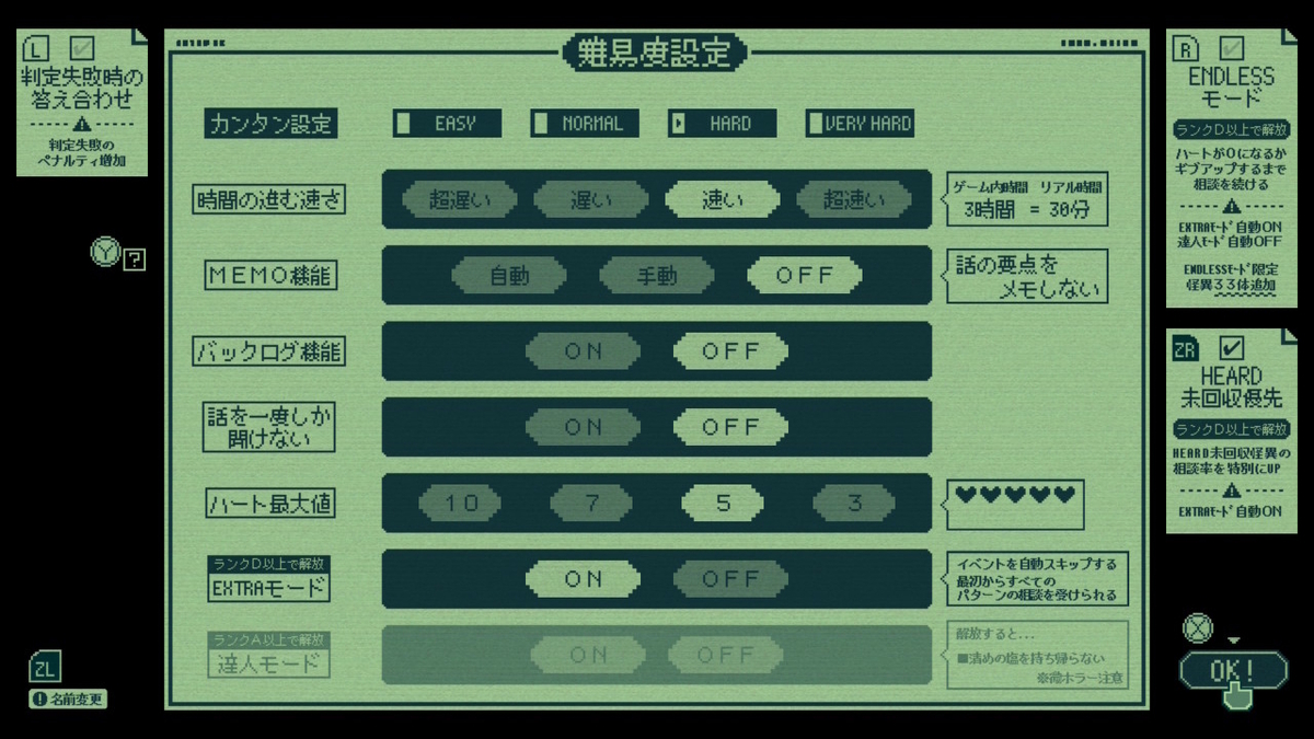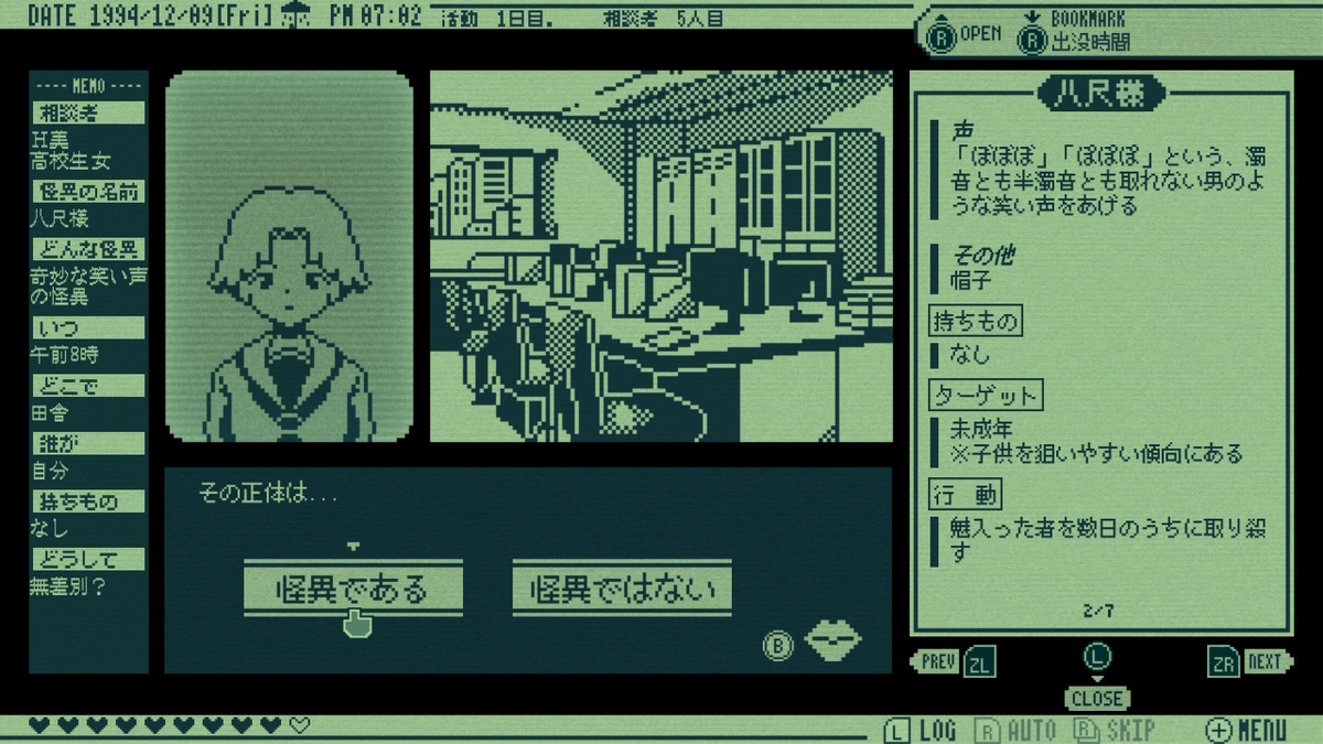 コールセンター「奇天烈お悩み相談室」の相談員となり、市民から「怪異」に関する相談を受けるという風変わりなゲーム。レトロ調のグラフィックにも惹かれ購入してみました!