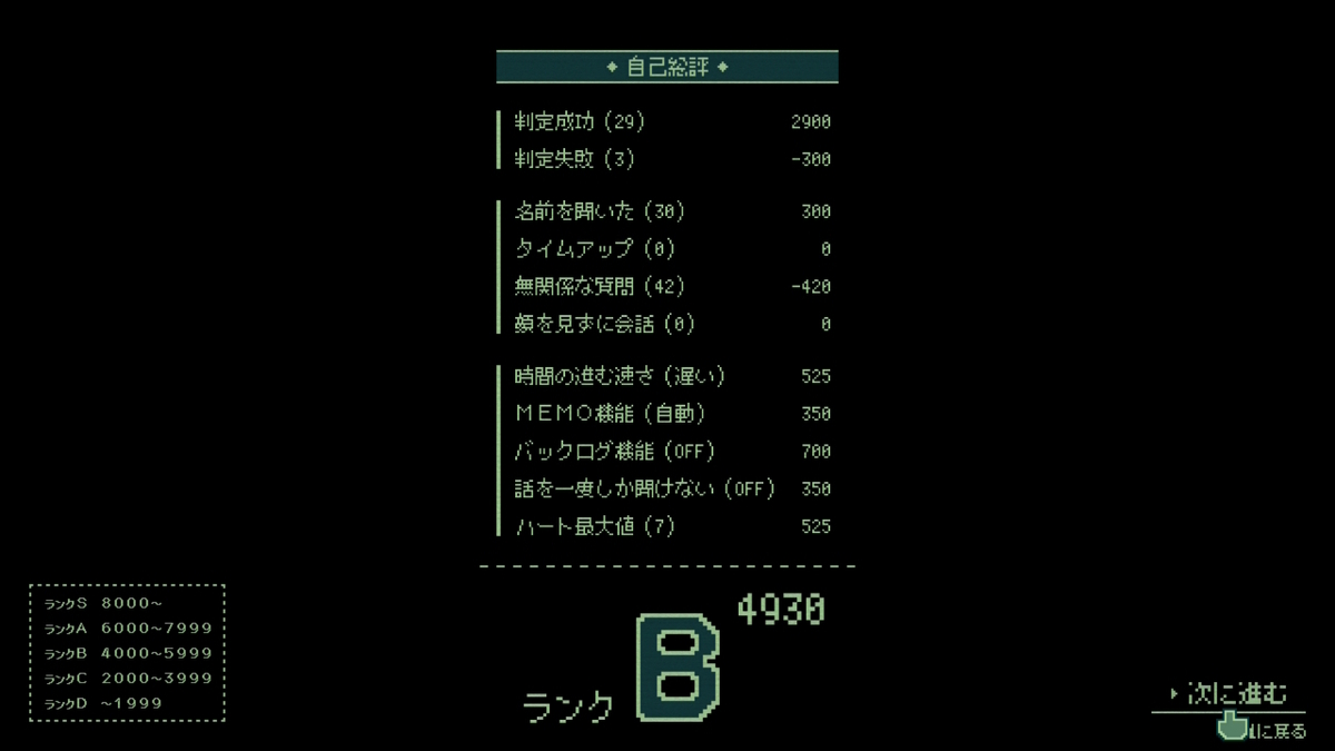難易度を高くしておいたほうがランクは高くなるので、できるだけ難易度は高くしておいた方がよいという攻略要素もあります。